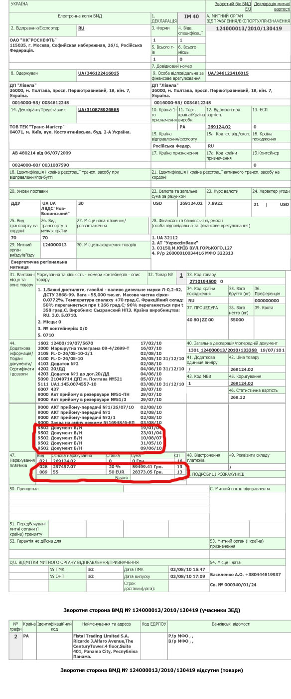 В распоряжении OilNews оказалась копия таможенной декларации, по которой ДП «Ливела» импортировала первую партию дизельного топлива без уплаты акцизного сбора и НДС.