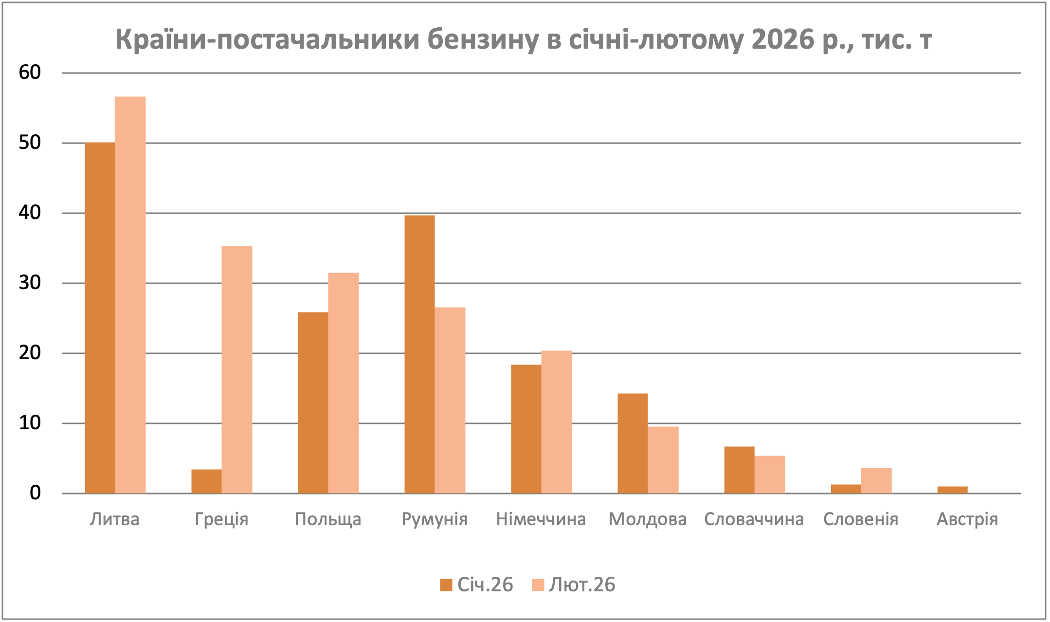 Найбільший постачальник січня – Литва – не тільки зберіг свій статус лідера, а ще й наростив відвантаження на 13%, до 56,6 тис. т. Для ORLEN Lietuva Україна теж важлива – чверть виробництва бензину.
