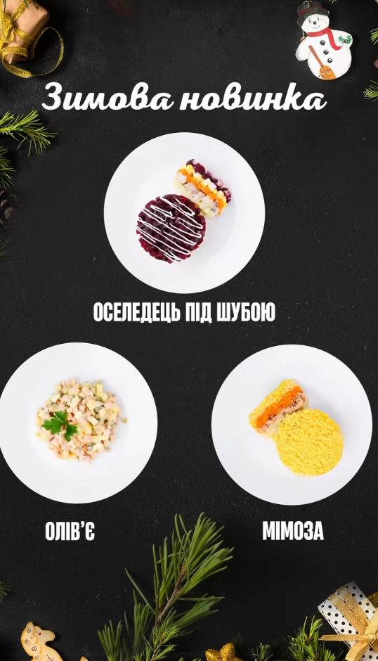 Як зазначається у повідомленні, у меню на всіх АЗС вже доступні салати «Олів’є», «Оселедець під шубою» та «Мімоза».