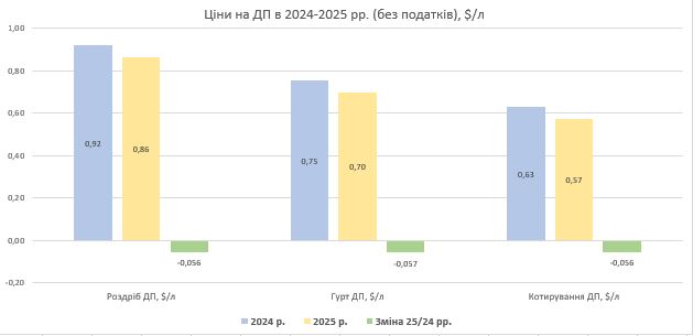 Зростання роздрібних цін на пальне в Україні 2025 року було зумовлене підвищенням акцизів і девальвацією гривні, тоді як динаміка гуртових і роздрібних цін без податків повністю відповідала тенденціям світового ринку.