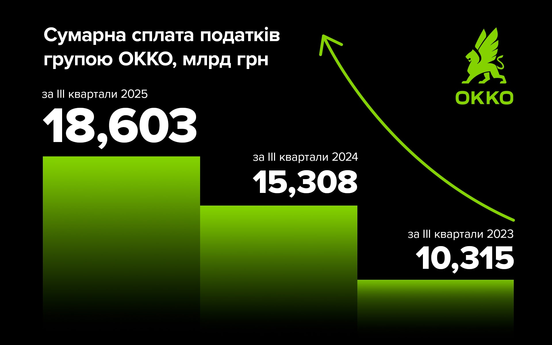 «Упродовж 2025 року ОККО щоквартально нарощує обсяги коштів, перерахованих у бюджет. У І кварталі було заплачено 5,37 млрд грн, у ІІ-му – 5,86 млрд грн, у ІІІ-му – 7,38 млрд грн», — йдеться у повідомленні.