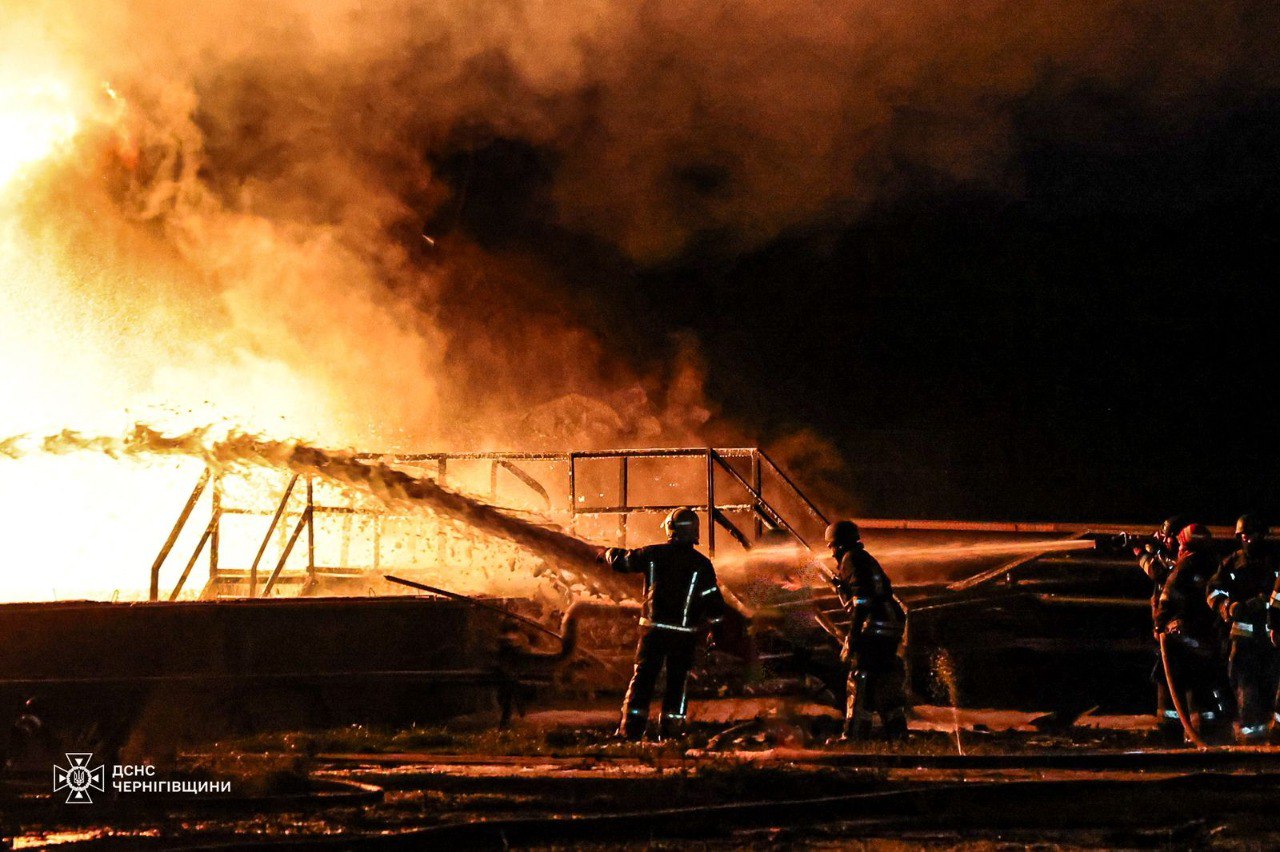 У ніч на 14 жовтня внаслідок атаки дронів у Ніжинському районі Чернігівської області було уражено нафтобазу. Про це повідомило Оперативне командування «Північ».