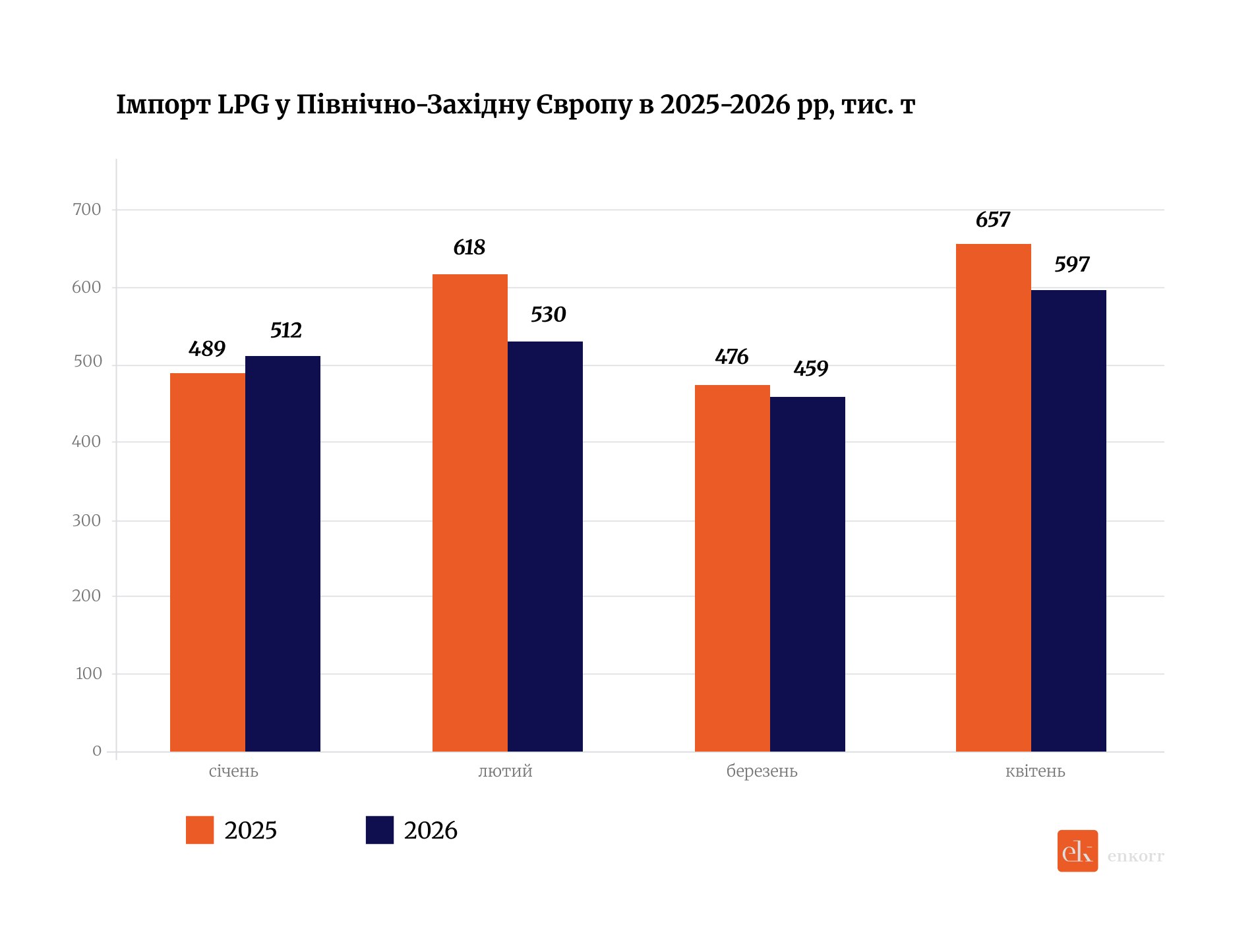 Водночас у регіоні формується надлишок ресурсу. Європейському ринку знадобилося лише півтора місяця, щоб перейти зі стану «де купити» до «кому продати». Дані аналітиків OPIS свідчать, що обсяги постачань скрапленого газу у північно-західну Європу в квітні перевищать березневі, досягнувши 597 тис. т, що є найвищим рівнем з листопада минулого року.