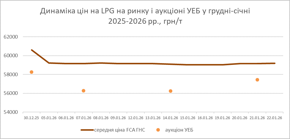 Епізодичні сплески споживання прискорили темпи вимивання з ринку дешевих грудневих обсягів, у результаті чого ціни на газ почали точково зростати. Згідно з моніторингом Консалтингової групи «А-95», середня вартість газу з 15 по 22 січня у прайсах трейдерів зросла на 140 грн/т і становить 59 180 грн/т, однак на аукціоні Української енергетичної біржі 21 січня середньозважена вартість пального зросла на 1193 грн/т, до 57 453 грн/т.