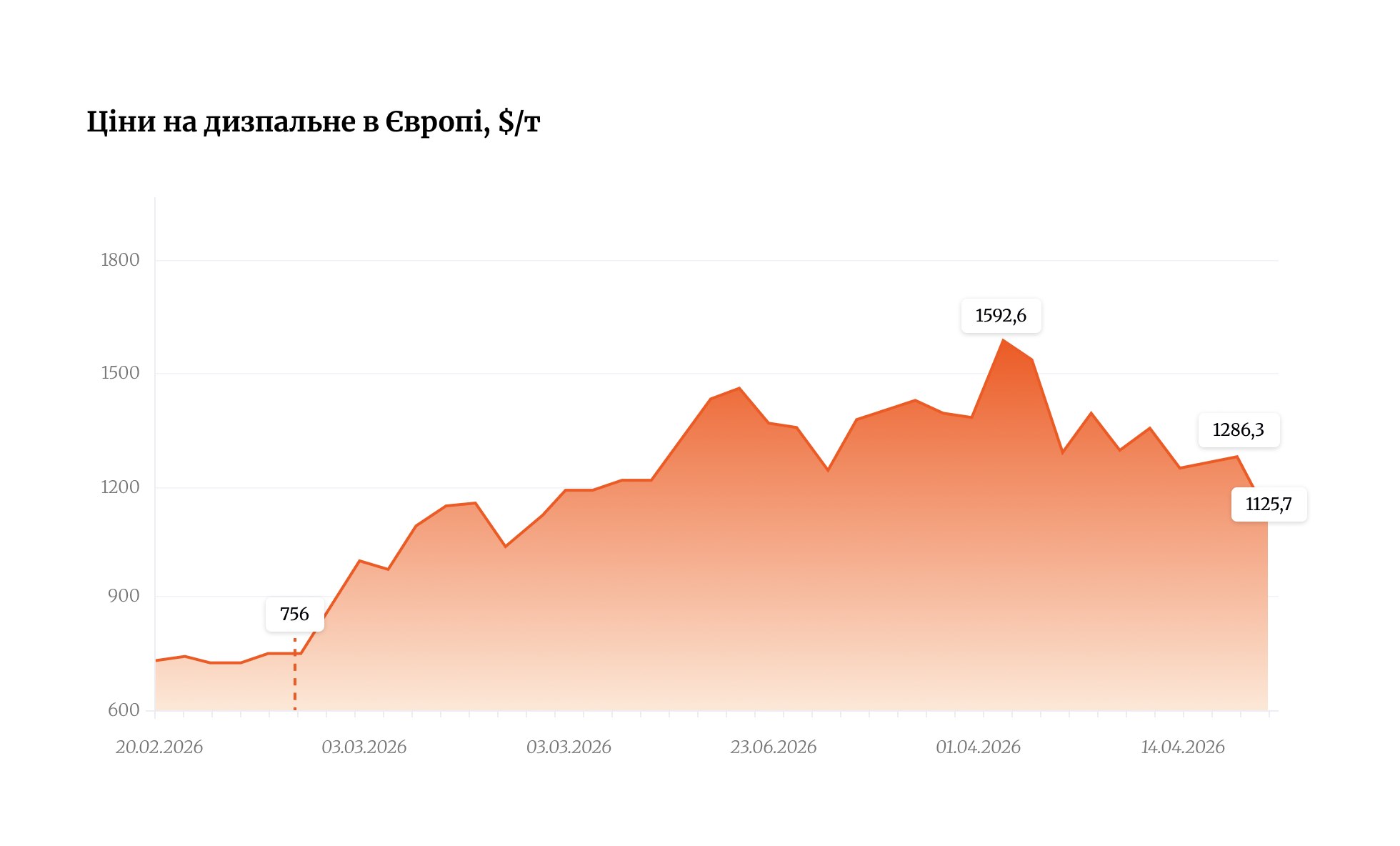 Водночас ф’ючерси на газойль на Лондонській біржі просіли в середньому майже на $190/т (8,4 грн/л). Станом на 17:08 20 квітня, на тлі побоювань щодо поновлення вогню між США й Іраном вони відіграли $54/т ($1 082/т).