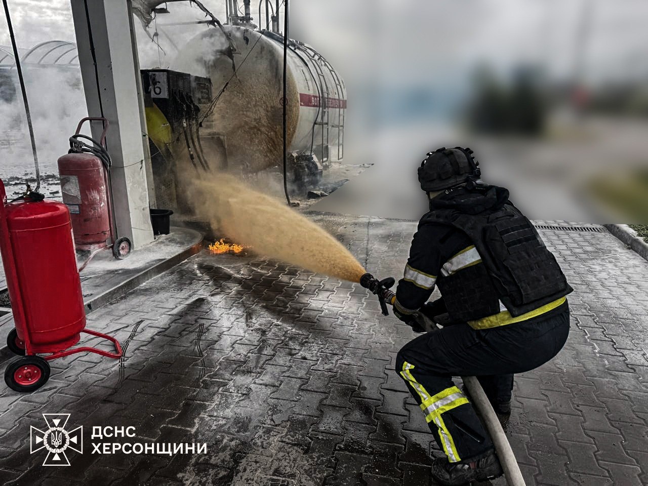 російський дрон сьогодні зранку атакував АЗС у Херсоні. Про це повідомляє ДСНС України на своєму телеграм-каналі.