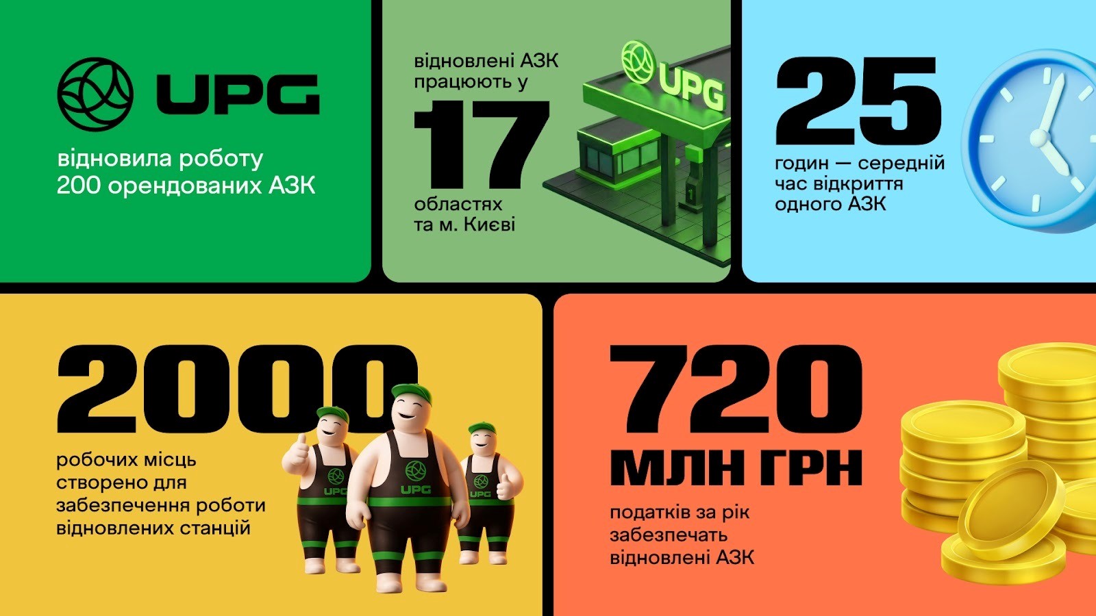 «Відкриття відбувалося протягом семи місяців у рекордному для ринку темпі: у середньому UPG запускала один АЗК кожні 25 годин, відновлюючи паливну інфраструктуру в регіонах України», — йдеться у повідомленні.