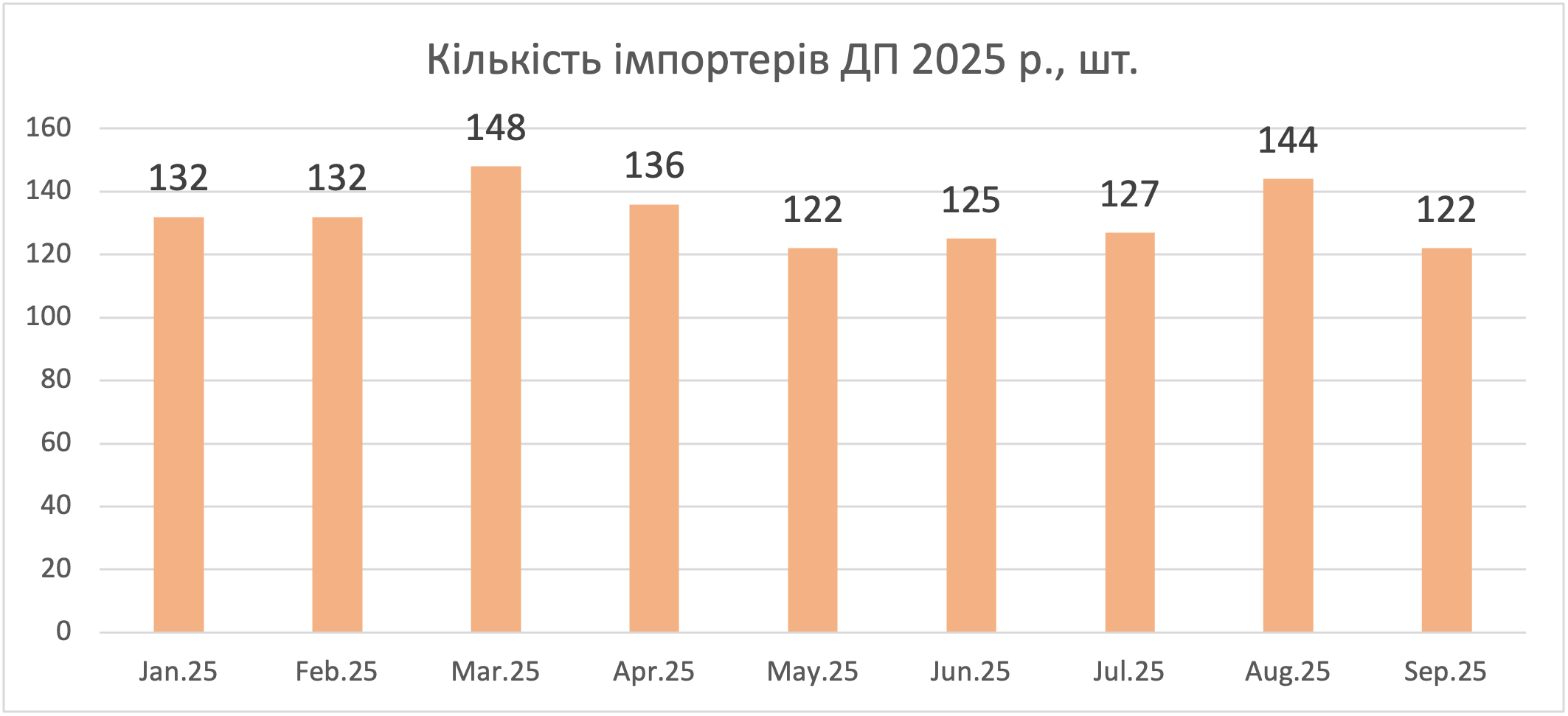 Відповідно на частку ТОП-10 імпортерів припало 70% (477,6 тис. т) від загального обсягу, тоді як у серпні — 67% (436,7 тис. т).