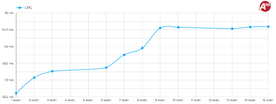 За тиждень з 8 по 15 жовтня середня вартість скрапленого газу зросла на 640 грн/т, до 54 590 грн/т. Це найвищі ціни із середини травня 2025 року, свідчать дані моніторингу Консалтингової групи «А-95».
