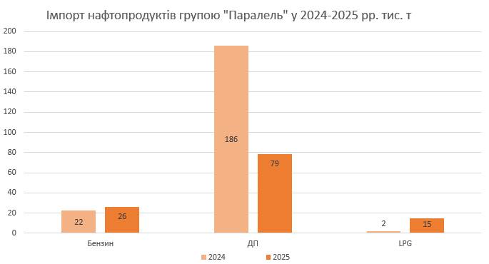 Згідно з даними митниці, ТОВ «Паралель М» 2025 року зменшило імпорт нафтопродуктів майже вдвічі – з 211 до 119 тис. т.