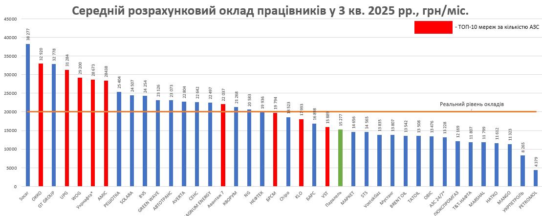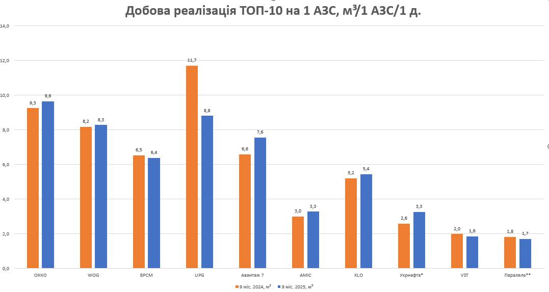 Відповідно до даних Тимчасової слідчої комісії парламенту, продаж пального через автозаправні станції групи «Паралель» за 9 міс. 2025 року зменшився на 27%. І він найменший серед мереж ТОП-10 за кількістю АЗС – 1 700 л на добу в середньому у мережі зі 118 АЗС, які мали ліцензії (на сайті компанія каже про 95 АЗС).