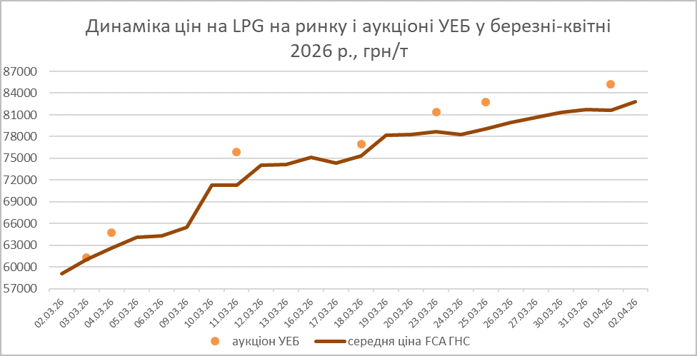 Середня ціна на LPG за умови FCA, згідно з моніторингом Консалтингової групи «А-95», становила 83 860 грн/т, що на 2 910 грн/т більше, ніж тижнем раніше.