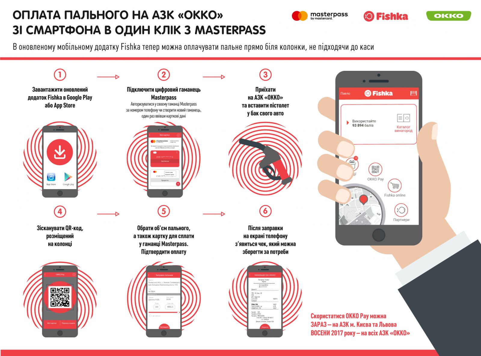 Воспользоваться новым сервисом уже можно на автозаправочных комплексах ОККО Киева и Львова. Осенью услуга станет доступной по всей территории Украины.