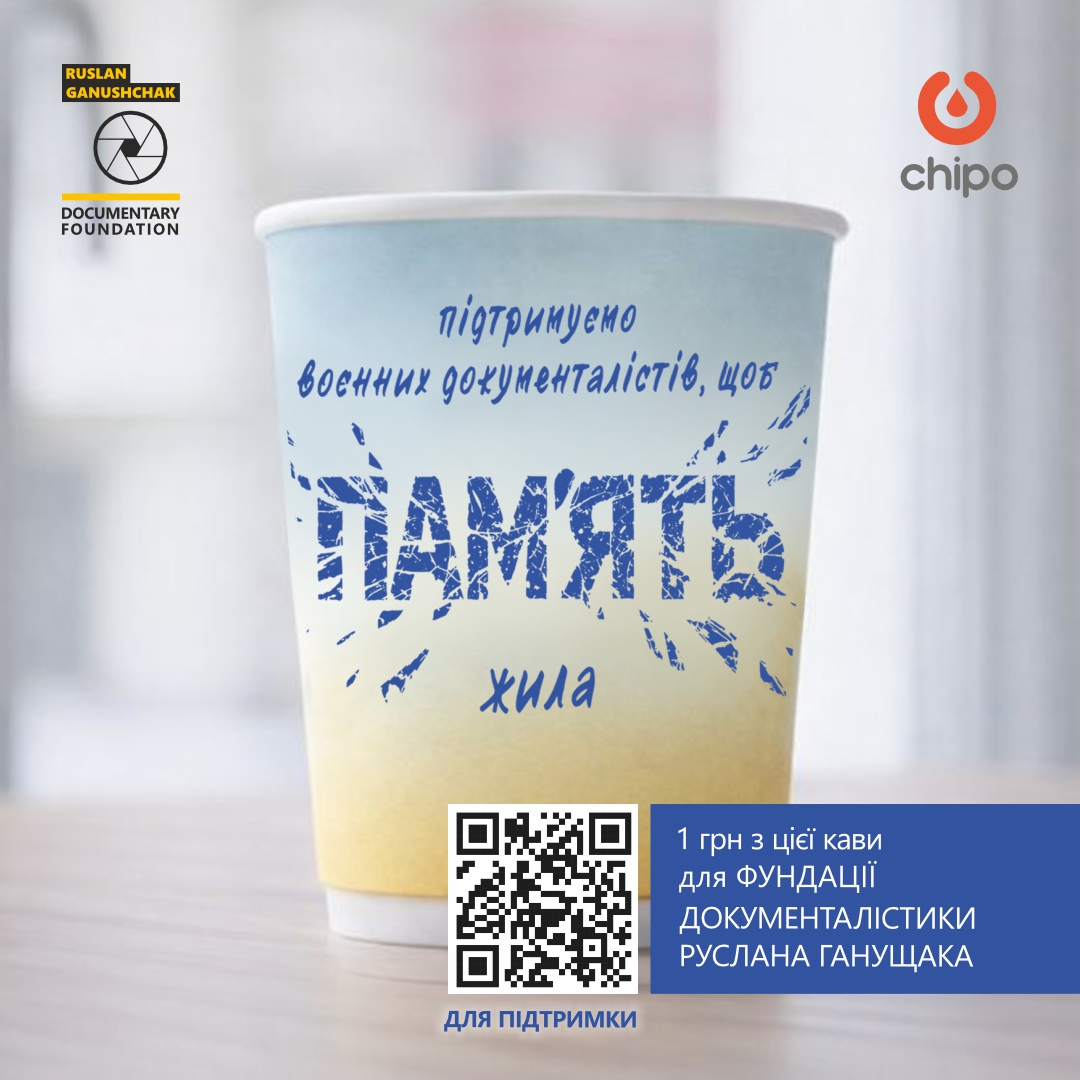У межах ініціативи в лютому-березні 2026 року 1 гривня з кожної проданої порції кави на АЗС Chipo спрямовується на підтримку воєнних документалістів.