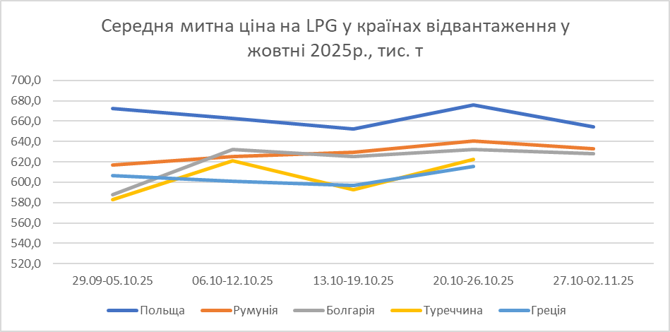 З заходу, звідки заїхало 17 тис. т газу (-7%), ресурс вантажився у більшості з Польщі (8 тис. т, у 2,6 раза більше порівняно з вереснем), де ціни хоч і знижувалися в середині місяця, але далі західних регіонів не дотягували.