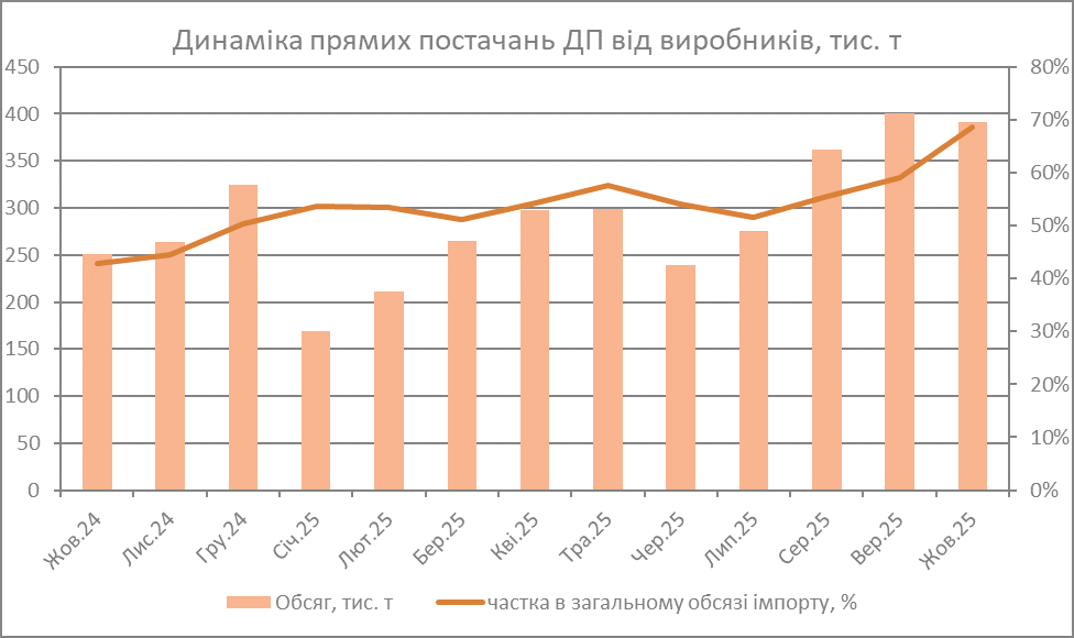 У жовтні обсяги постачань дизпального з Польщі зросли на 26%, до 254 тис. т, що є рекордним показником за весь час спостережень. Збільшення постачань з польського напрямку стало розвитком тенденцій вересня. Відзначилися всі — як ORLEN, так і незалежні трейдери. Продажі польського виробника зростають четвертий місяць поспіль і впевнено наближуються до шестизначної цифри, у жовтні з терміналів компанії надійшло 98 тис. т продукту проти 95 тис. т у вересні. ORLEN продовжує диверсифікувати базиси постачань та, окрім Журавиці, надає можливість відвантажувати з термінала НПЗ у Плоцьку.