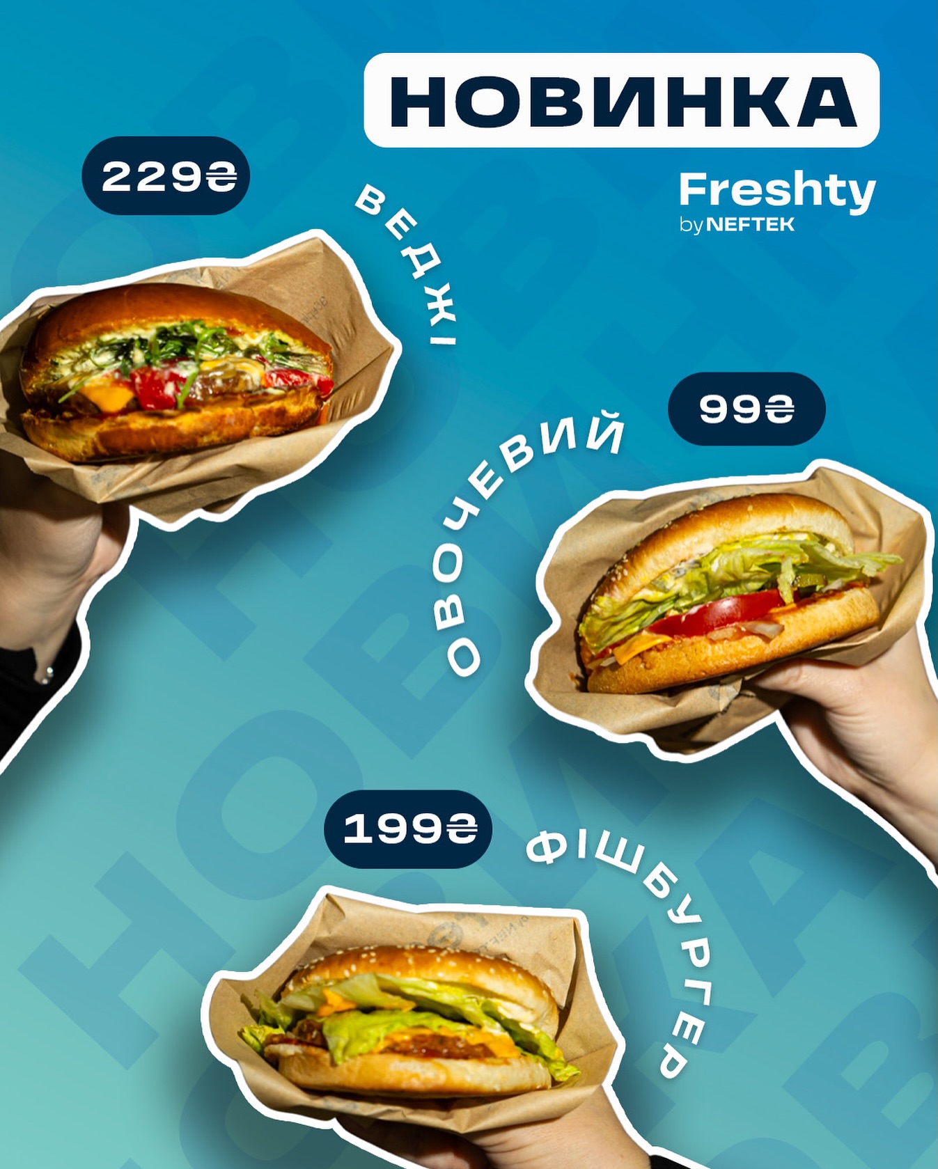 «Овочевий» — легкий варіант для тих, хто віддає перевагу свіжим овочам, «Фішбургер» — вибір для любителів риби, а «Веджі» — бургер із соєвим м’ясом, що дарує смак м’яса без м’яса.