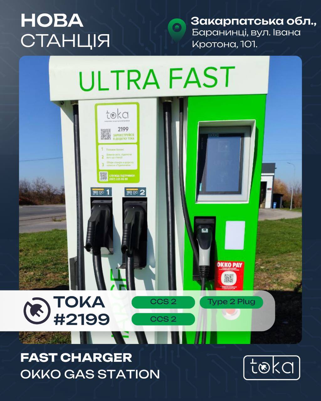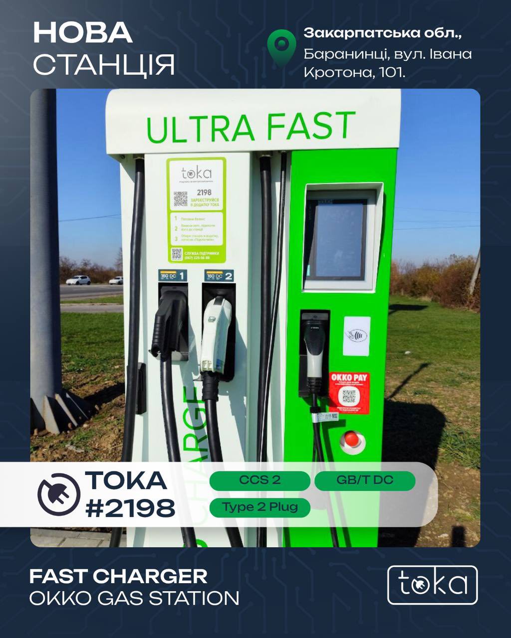 Тарифи й можливості зарядки на TOKA #2198 OKKO Gas Station: