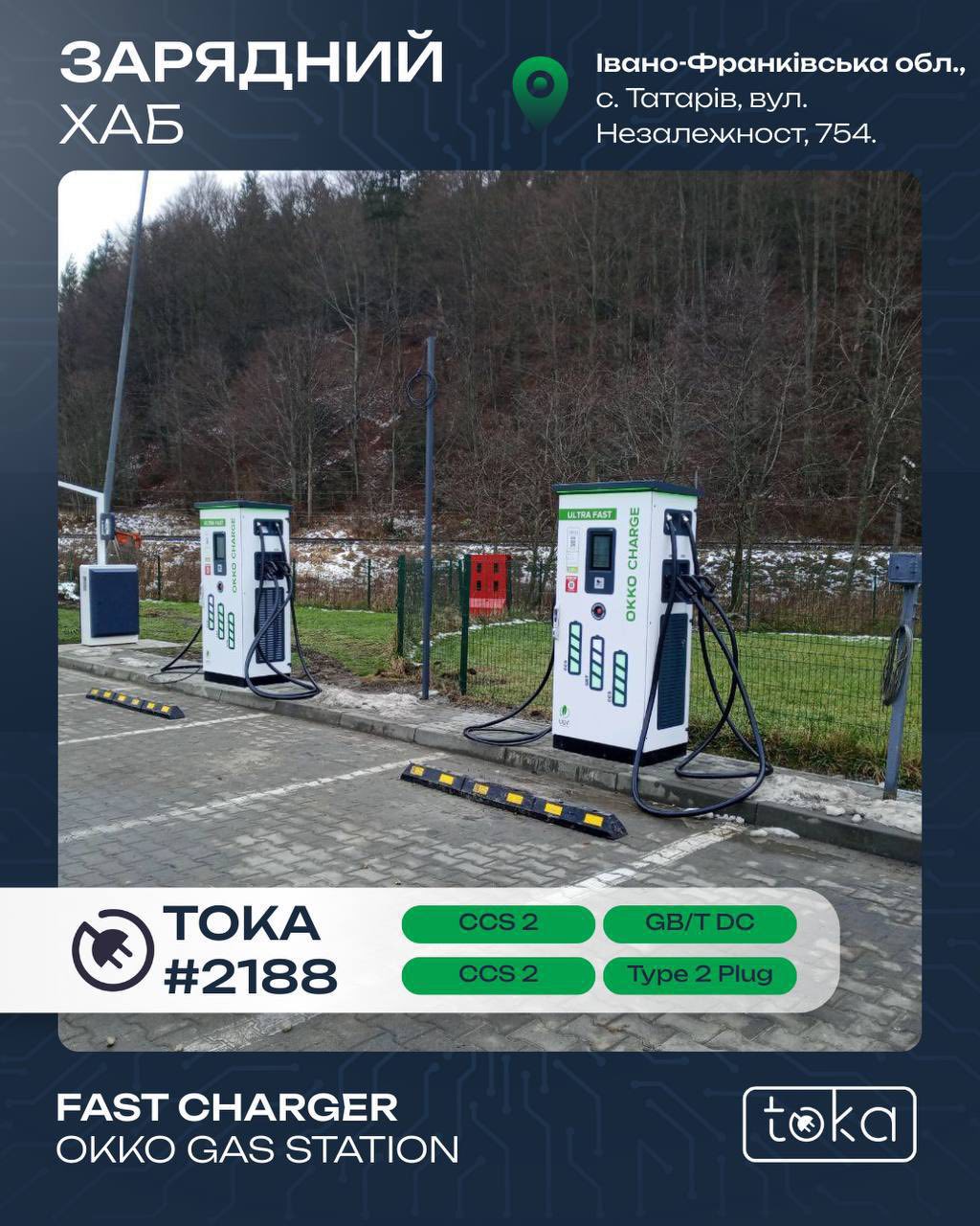 В Івано-Франківській області на АЗС ОККО встановлено новий зарядний хаб ТОКА для електромобілів, про що повідомляється на сторінці компанії у Facebook.