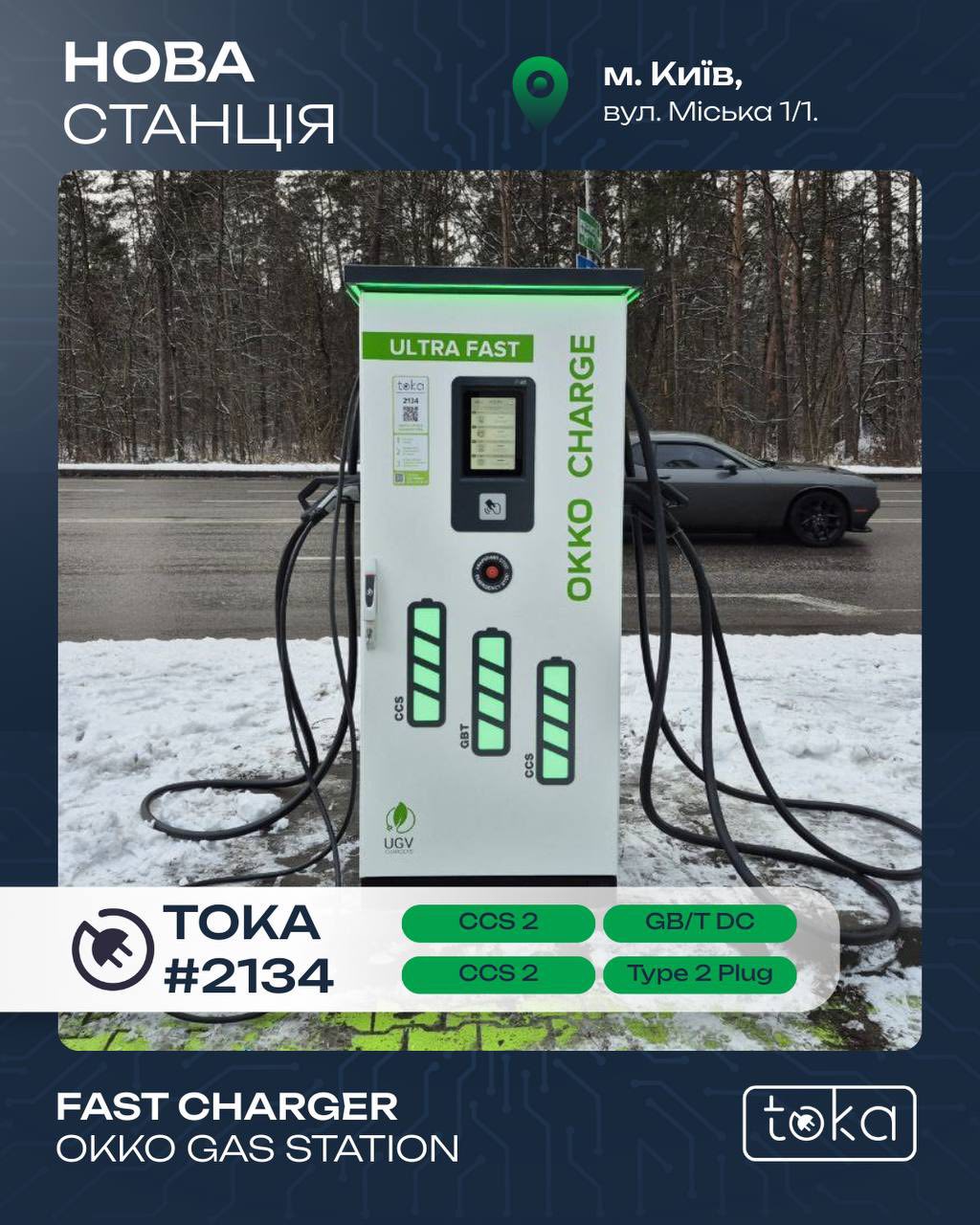 Станція TOKA №2134 розташована на АЗС ОККО за адресою: м. Київ, вул. Міська, 1/1.