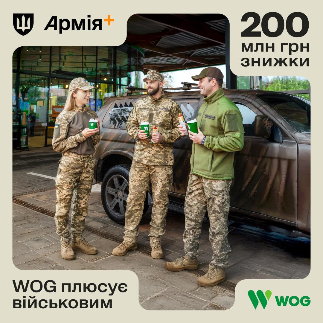 Мережа АЗК WOG повідомила, що військовослужбовці вже скористалися знижками на понад 200 млн грн у межах національної програми підтримки «Плюси» в застосунку «Армія+». Про це компанія повідомляє на своїй сторінці у Facebook.