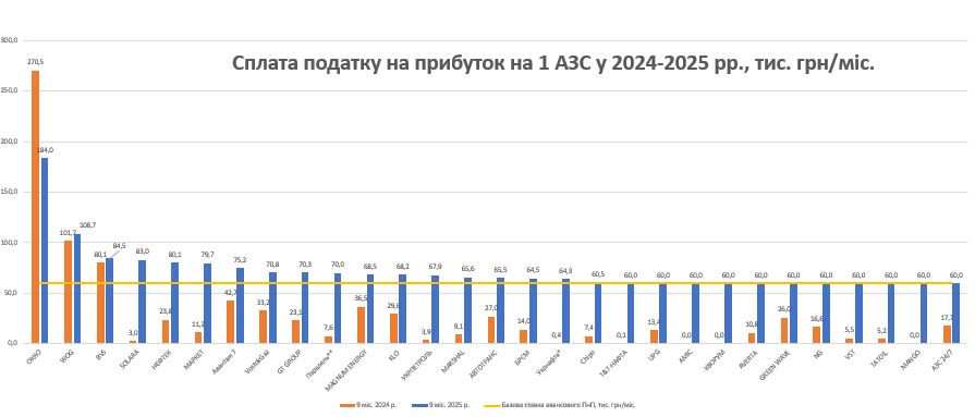 За даними Консалтингової групи «А-95», після запровадження фіксованих авансових внесків податкові надходження від паливного ритейлу суттєво зросли. Так, минулого року сплата податку на прибуток 40 найбільшими мережами АЗС перевищила показник попереднього року більш ніж у п’ять разів — до 107 млн грн проти близько 20 млн грн. При цьому в розрахунок не включено платежі мереж ОККО, WOG і BVS, які й раніше сплачували податок на прибуток у більших обсягах, ніж встановлений мінімальний рівень.