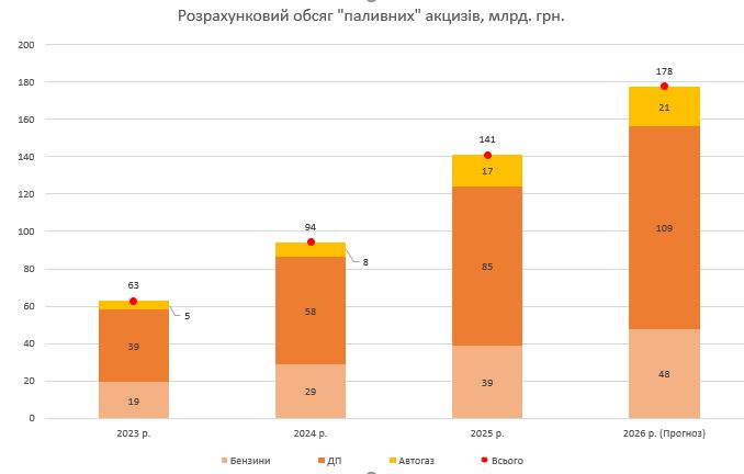 «За останні 2 роки акциз на пальне зріз на 6-7 грн/л залежно від марки пального. Якщо 2023 року паливні акцизи становили приблизно 63 млрд грн, то у 2025-му це було вже 141 млрд грн. А поточного року – до 180 млрд грн. Тобто люди за кермом платили й платять у бюджет величезні суми. Зрозуміло, є центральна і найголовніша задача – оборона. Але дороги – теж про це», — зазначив очільник «А-95».