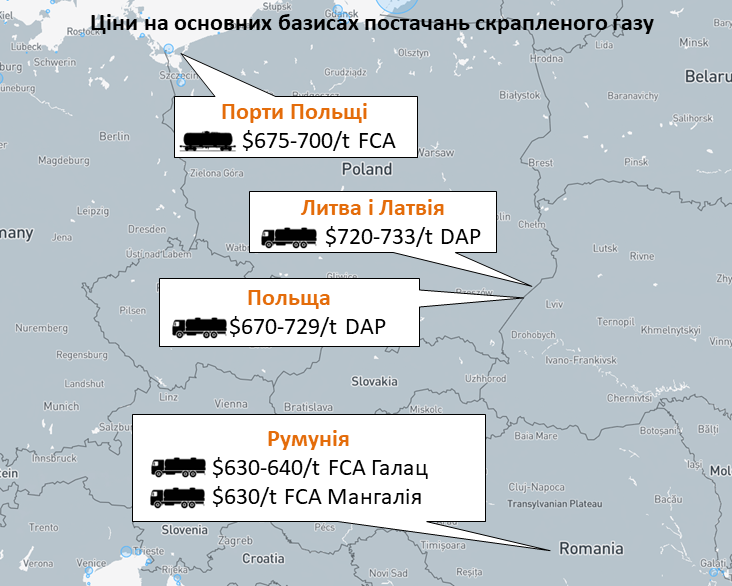 Пропозиція залізничного ресурсу була обмеженою. На початку тижня один з трейдерів запропонував пропан і суміш за $670-685/т DAP Ягодин, але потім зняв обсяги, щоб продати їх на польському ринку. Партії бутану виробництва Unipetrol і MOL продали за $590-600/т DAP.