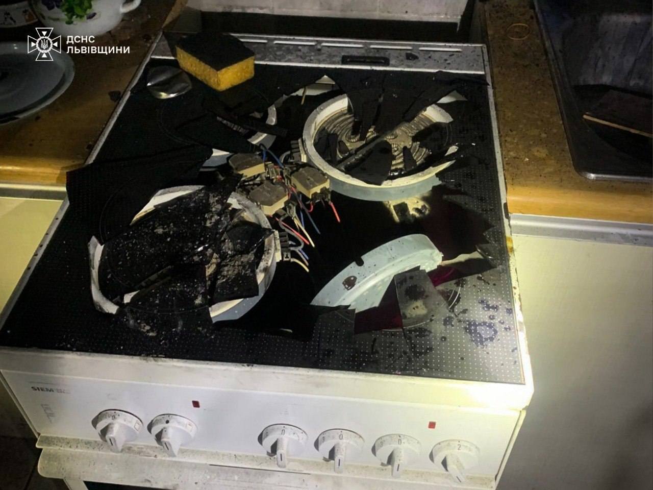 Після відновлення подачі електроенергії він нагрівся й вибухнув, що призвело до займання. Двері квартири деформувалися, їх зрізали рятувальники за допомогою спецінструменту.