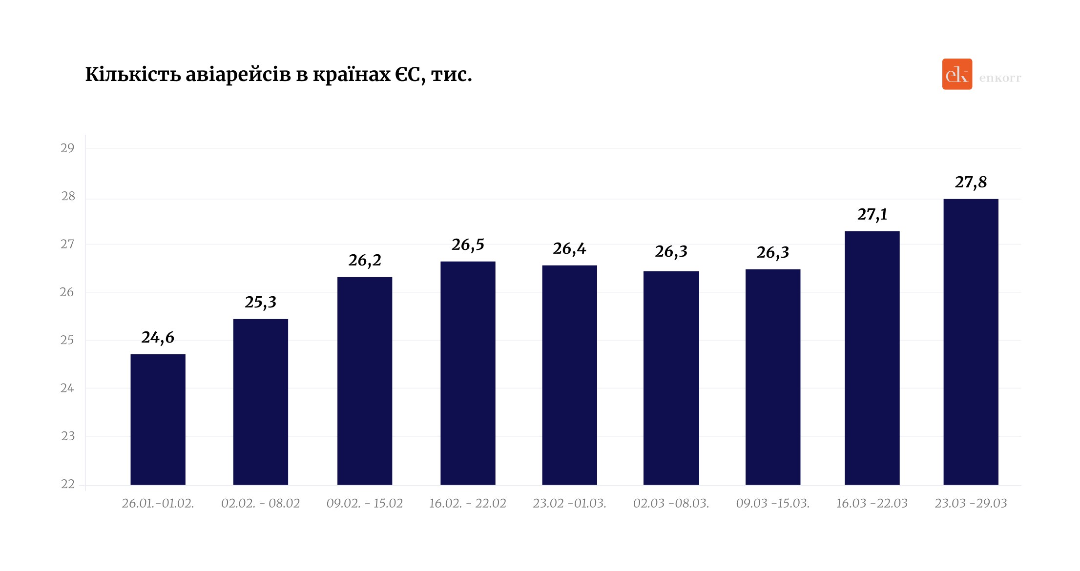 Розрахунки enkorr свідчать, що з моменту початку військової операції США та Ізраїлю проти Ірану котирування авіапалива зросли більш ніж на $1000/т. Подорожчання гасу було більшим, ніж у дизпального, ціни якого за той же період зросли лише на $845/т.
