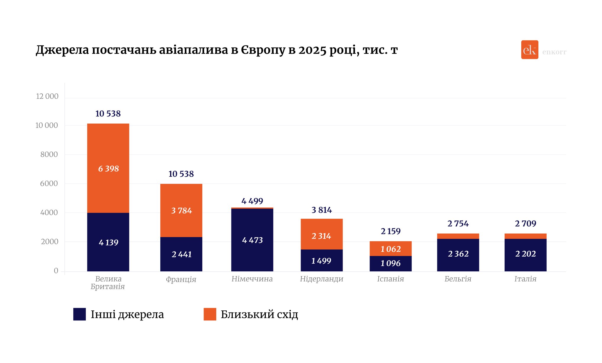 Найбільші європейські імпортери авіапалива, Велика Британія і Франція, сильніше за інших в ЄС залежні від постачань з Близького Сходу. Торік ці країни разом придбали 16,8 млн продукту, з яких 10,2 млн припало на поставки з Перської Затоки.